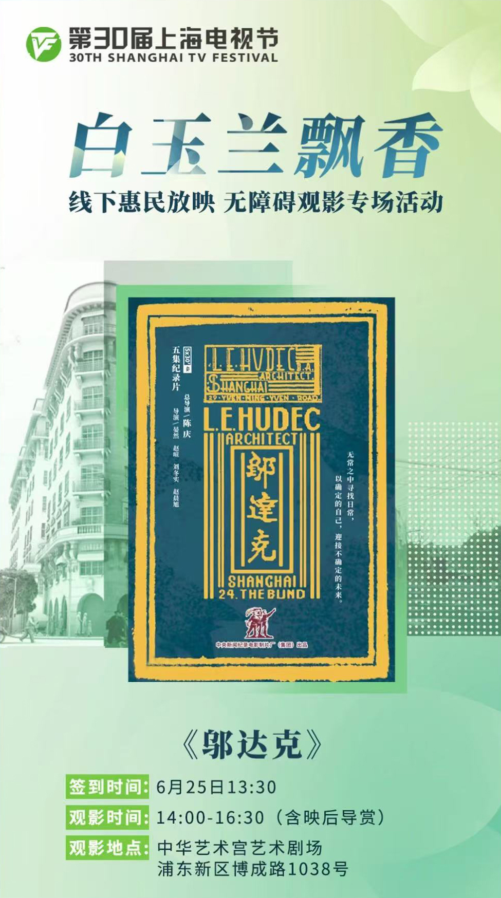6月23日,紀錄片《鄔達克》作為第30屆上海電視節“白玉蘭飄香”上海電視節節目展播開幕片正式亮相。